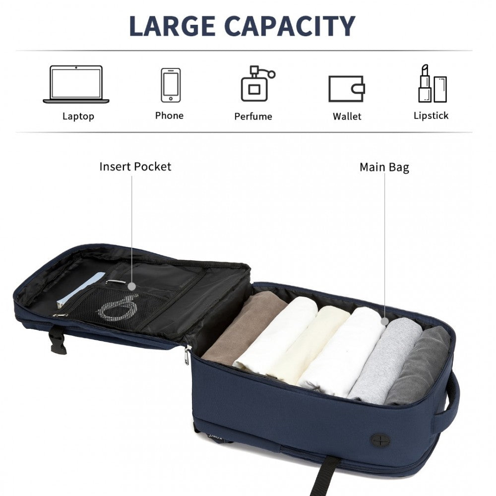 Kono BPK2504 Backpack in Navy with Red Trim - Water-Resistant Cabin Backpack for 15.6” Laptops
