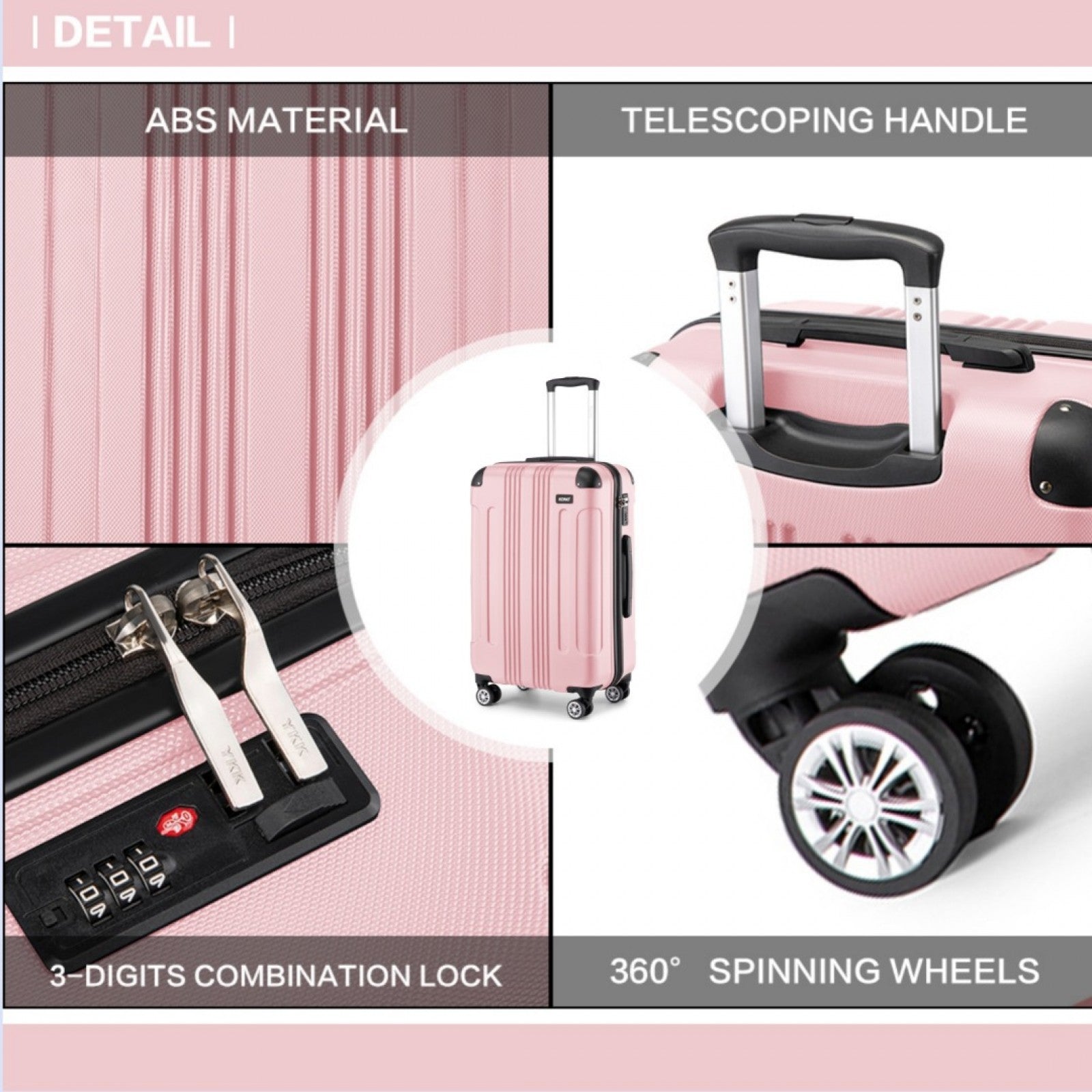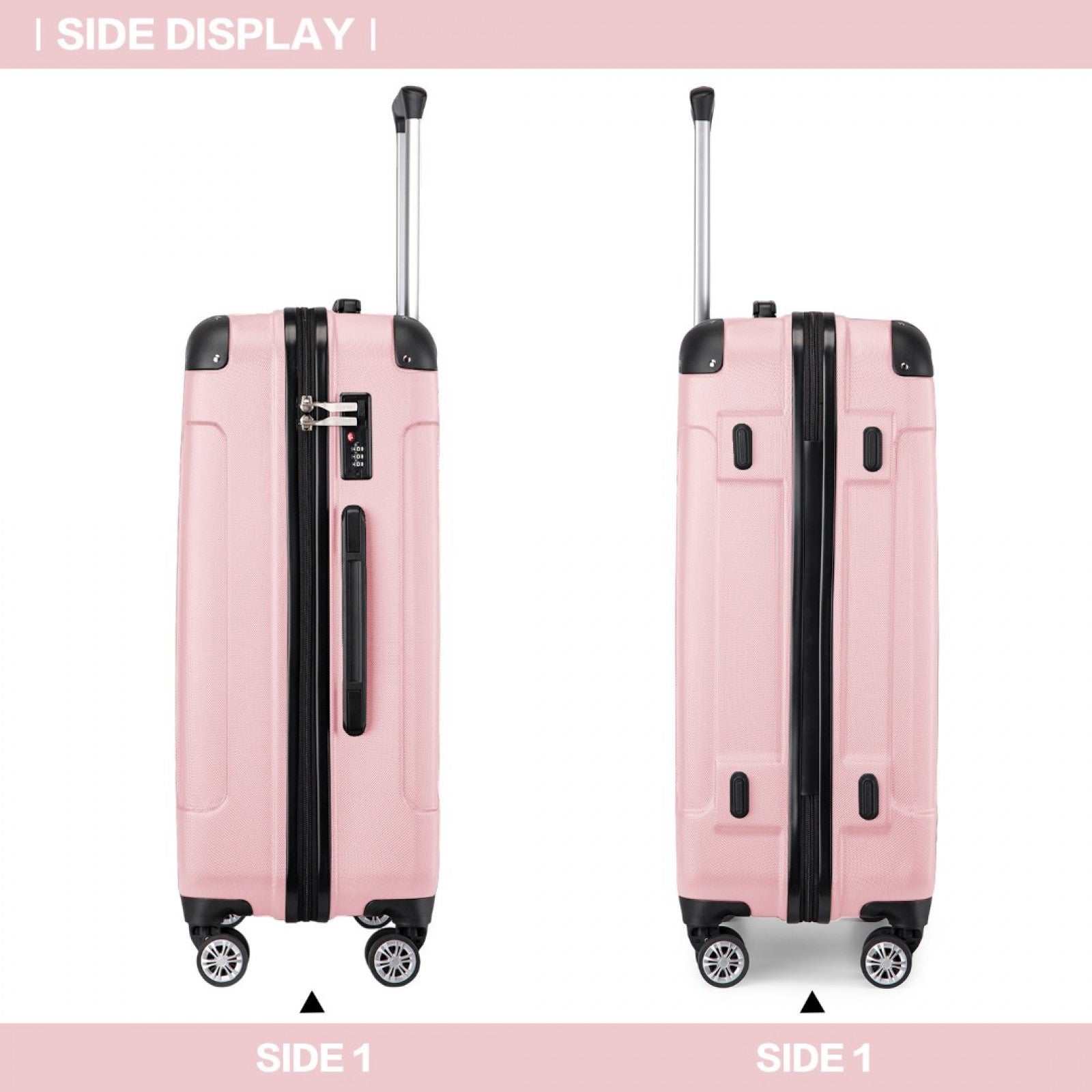 Kono K1777-1L Large Luggage in Pink (76x50x30cm) - ABS Lightweight Compact Hard Shell Suitcase