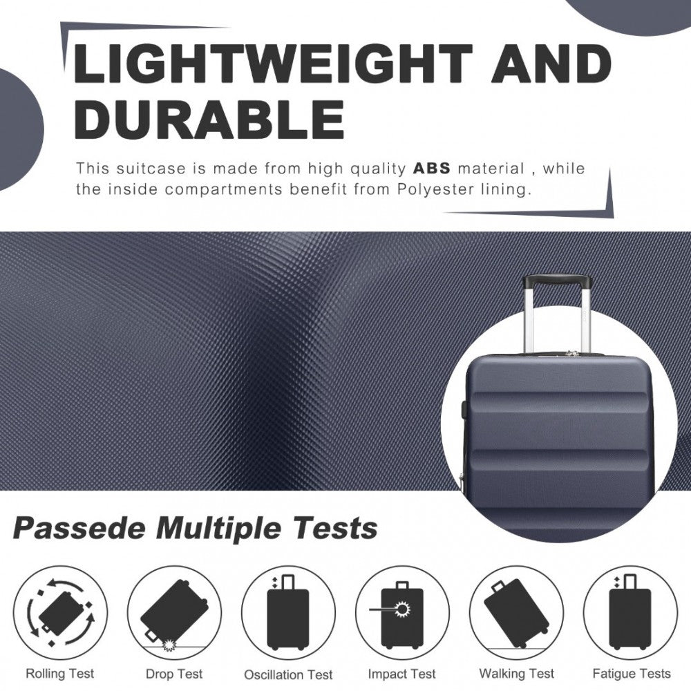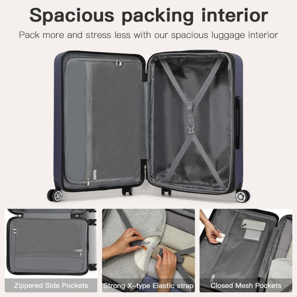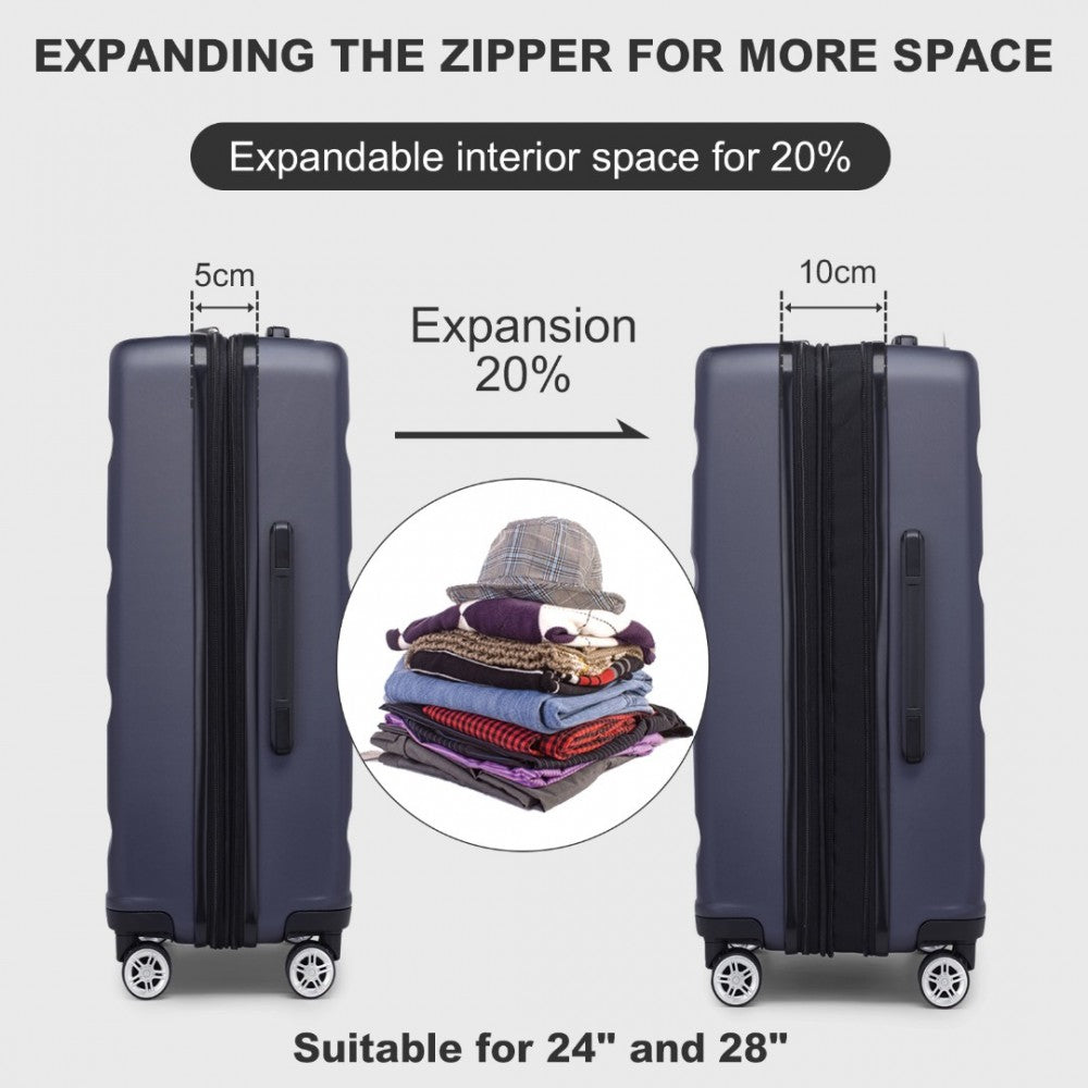 Kono KSK2482 Large Luggage in Navy (75x47.5x29.5cm) - Expandable Horizontal Engraved Hard Shell ABS+PC Check-In Suitcase with TSA Lock