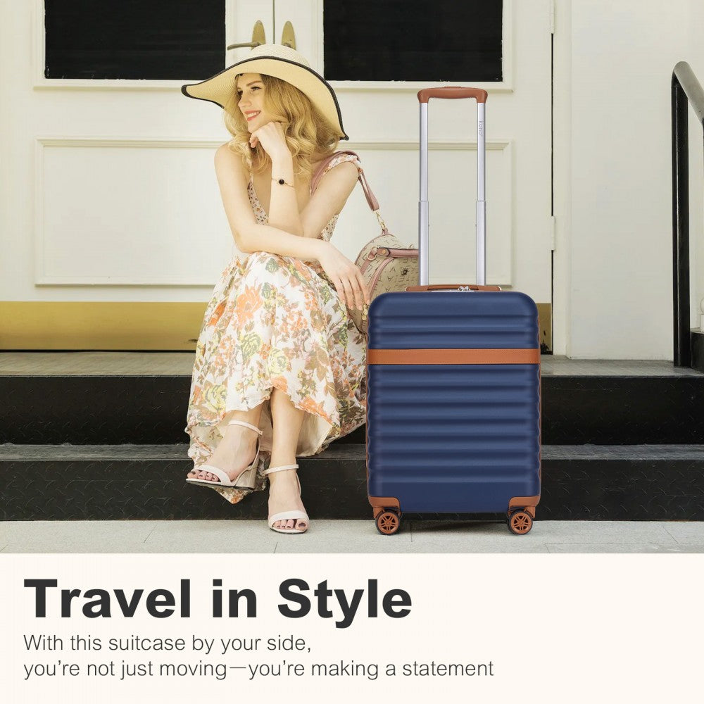 Kono KSK2484 Cabin Luggage in Navy and Tan (55x39x20cm) - Expandable Lightweight Hard Shell Suitcase with TSA Lock