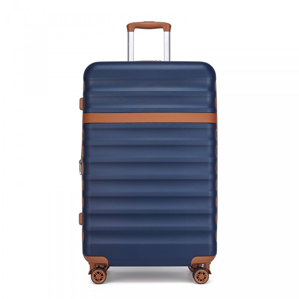 Kono KSK2484 Large Luggage in Navy and Tan (75x47.5x29.5cm) - Expandable Lightweight Hard Shell Suitcase with TSA Lock