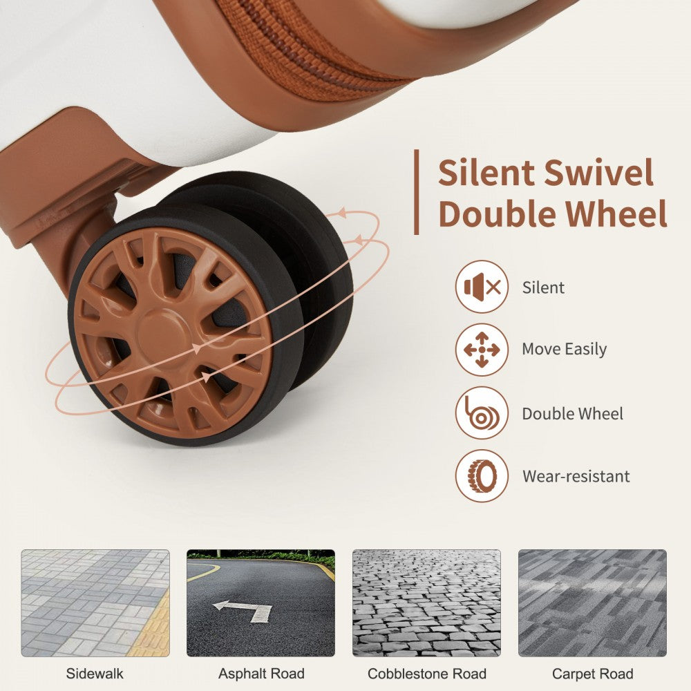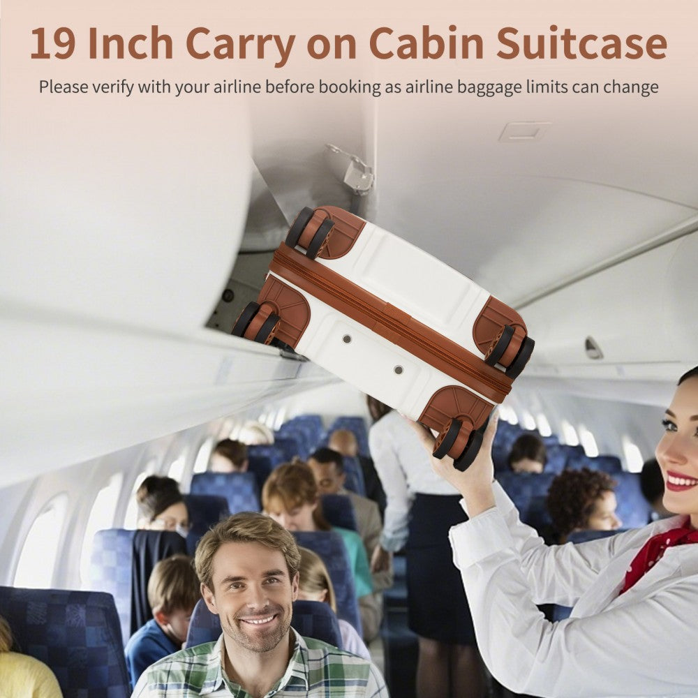 Kono KSK2492 Cabin Luggage in Cream and Tan (55x38x20 cm) - PP Hardshell Lightweight and Durable - Features TSA Lock & 360° Spinner Silent Wheels