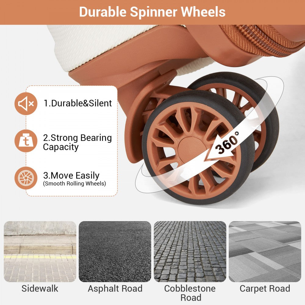 Kono KSK2596 Cabin Luggage in Cream and Tan (45x36x20cm) - ABS Hard Shell Cabin Suitcase with Spinner Wheels