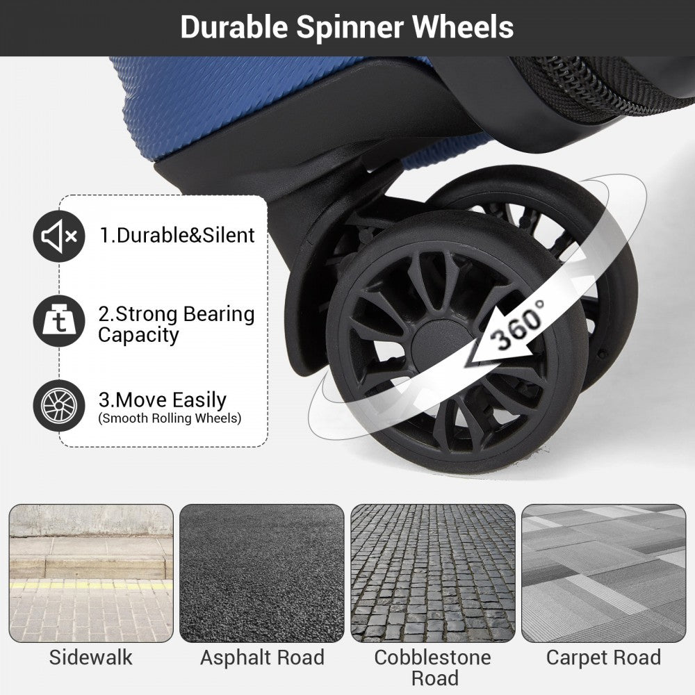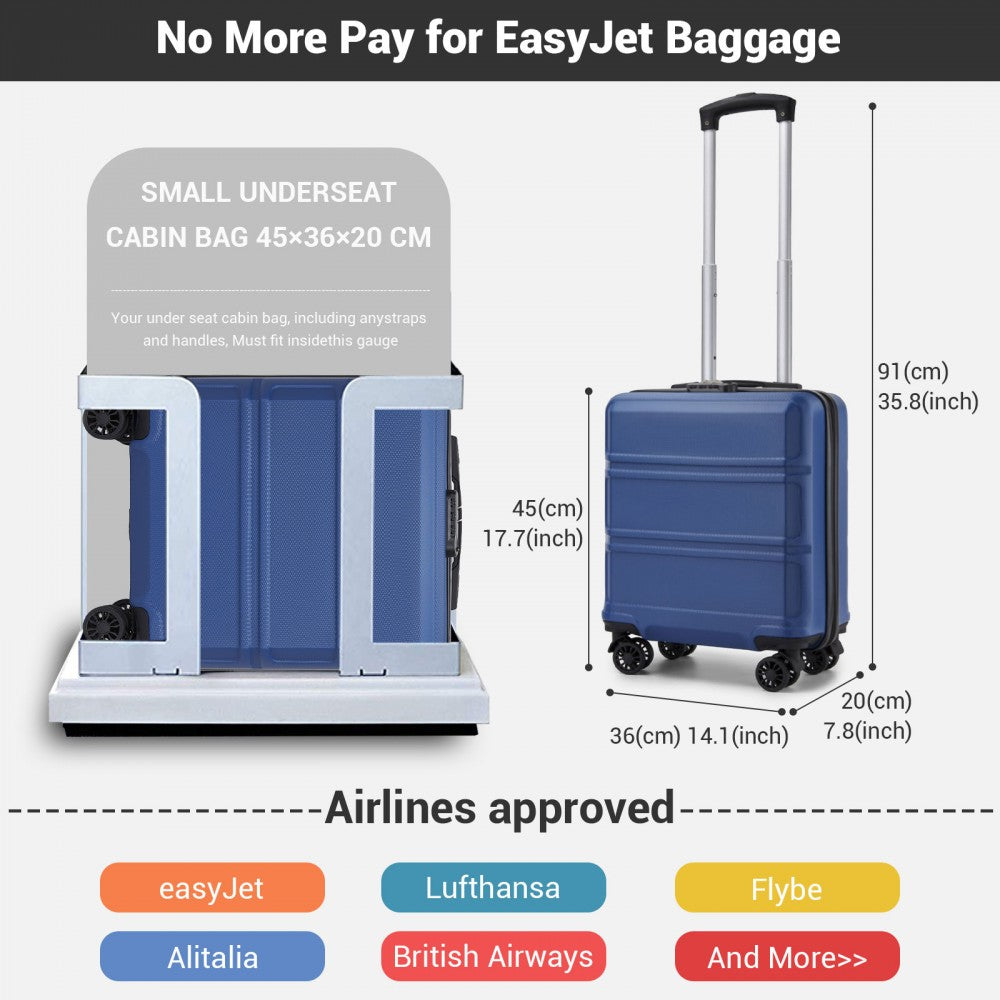 Kono KSK2596 Cabin Luggage in Navy (45x36x20cm) - ABS Hard Shell Cabin Suitcase with Spinner Wheels